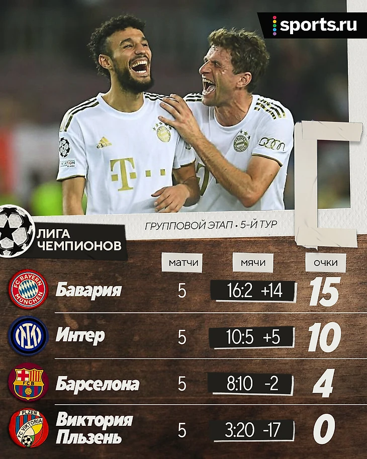 Теоретически каталонцы еще могли сравняться с «Интером» по очкам, когда начинали матч с «Баварией» – тоже набрать 10, но это все равно не выведело бы их на второе место. Миланцы в любом случае оставались бы выше за счет личных встреч: они выиграли дома и сыграли вничью на «Камп Ноу».