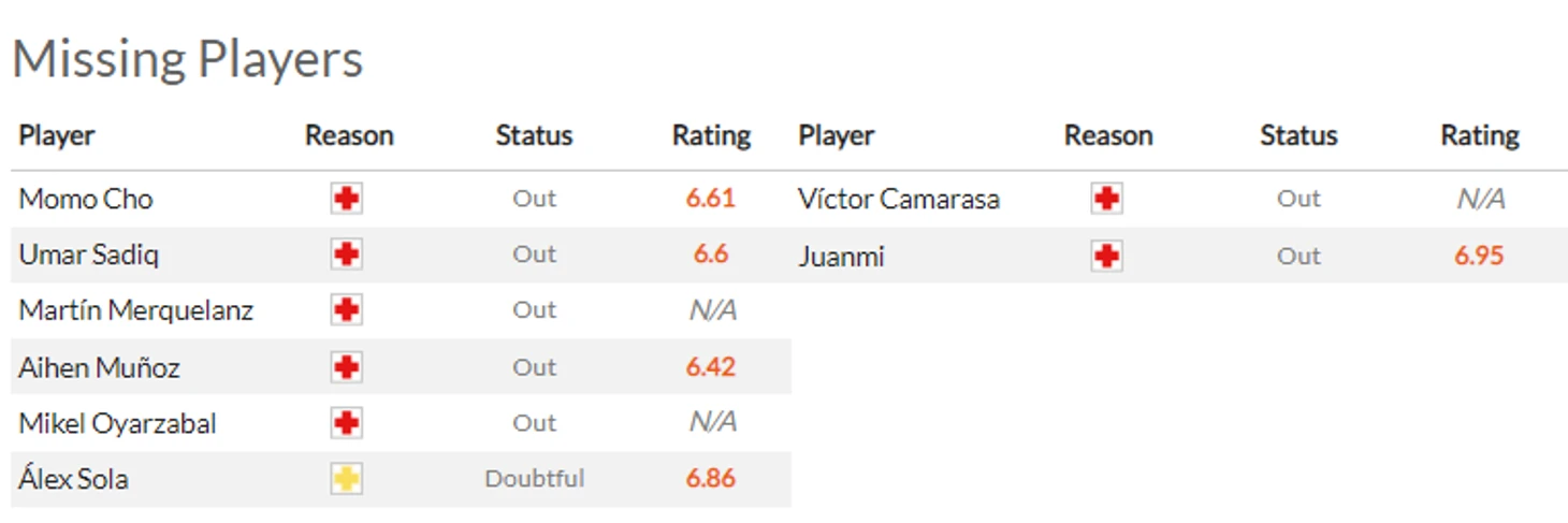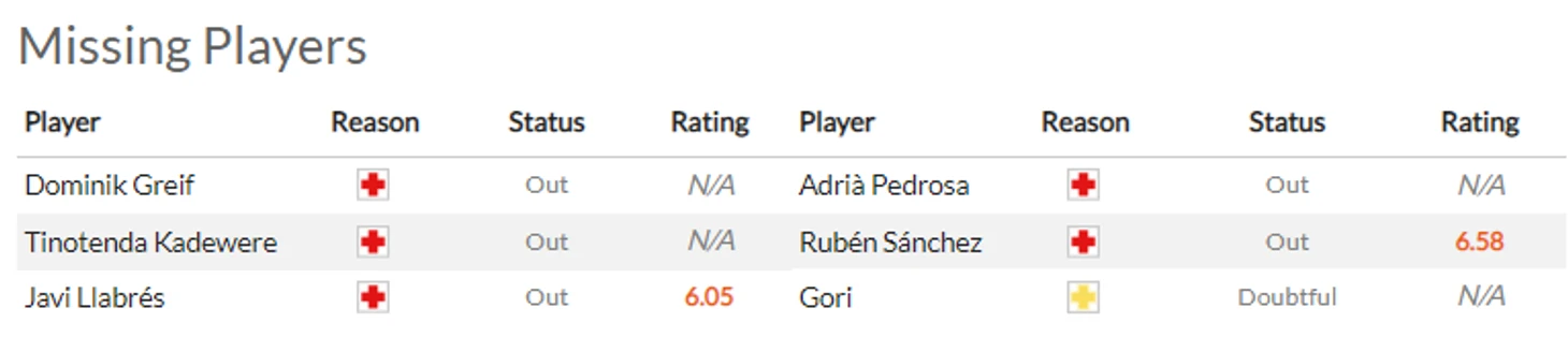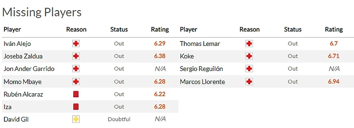 На что обратить внимание: На Лигу Чемпионов. Севилья уже попрощалась с мечтой о плэйофф, но продолжает участие в турнире. И продолжает нести из-за этого кадровые потери. Так после встречи с Копенгагеном в лазарете андалусийцев были замечены Иско(7,5), Буну(6) и Эн-Нессири(8). И теперь не очень ясно помогут ли они команде в ближайшем туре.