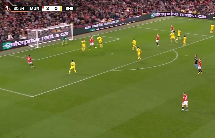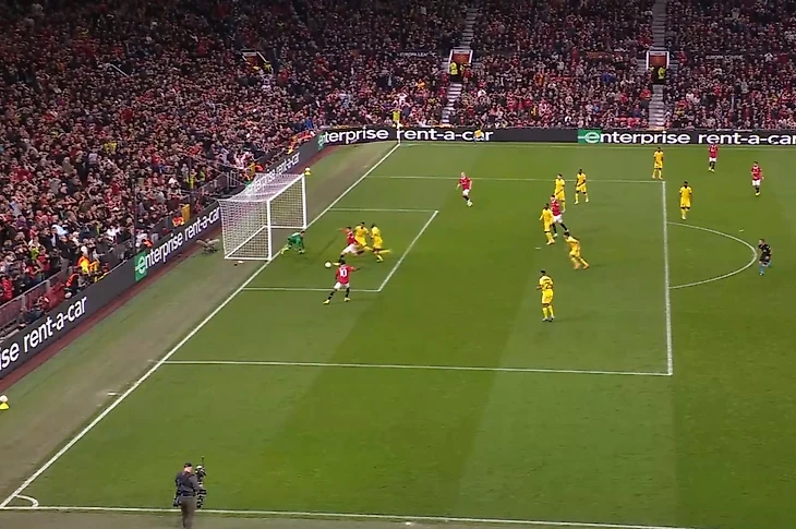 Бруну навесил справа точно на голову Кришу, который высоко выпрыгнул и забил: