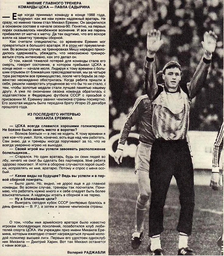 ЦСКА сенсационно стал чемпионом СССР, завоевав свои седьмые золотые медали – впервые с 1970 года. Свой триумф армейцы посвятили голкиперу Михаилу Еремину. 23-летний вратарь скончался от многочисленных травм, полученных в автокатастрофе на следующий день после победного финала кубка.