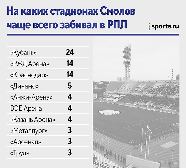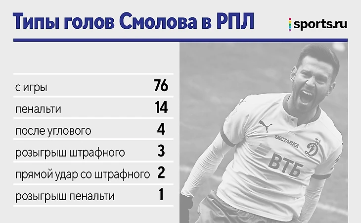 Смолов забил после всех возможных ситуаций, но, конечно, чаще всего – с игры, а не со стандартов.