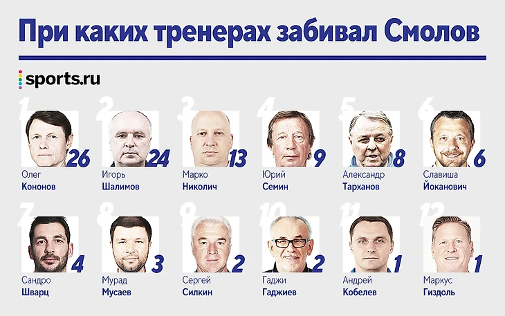 Игорь Шалимов – возможно, ключевой тренер в карьере Смолова (по версии Шалимова – без «возможно»). В «Краснодаре» Шалимов сначала ассистировал Олегу Кононову (работал над атакой), а затем стал главным. Именно тогда Смолова забивал больше всего.