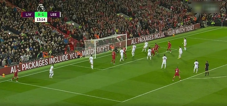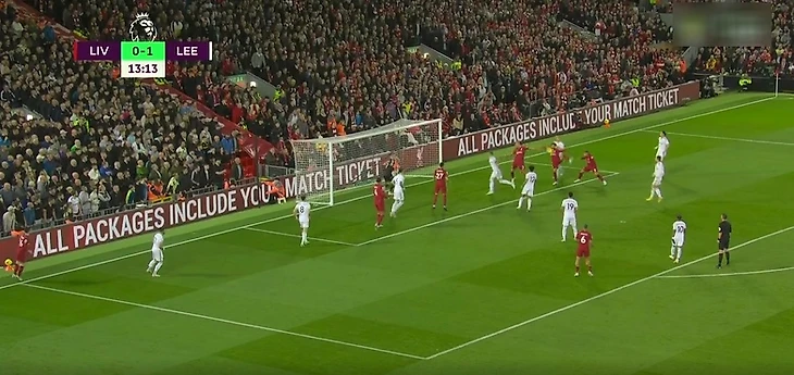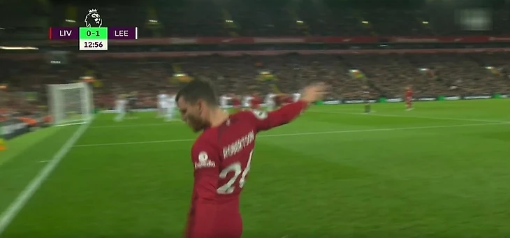Мяч улетел вправо от ворот, и Робертсон успел перехватить его. Эндрю навесил точнехонько на Салаха, и тот забил прямо с вратарской линии внутренней стороной стопы. У голкипера не было шансов.