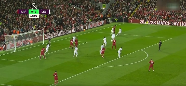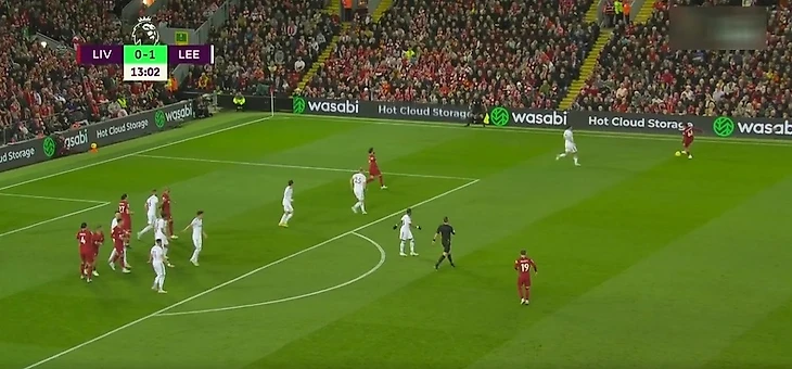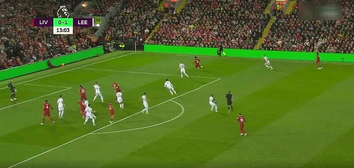 Мо окружили защитники «Лидса», и ему пришлось отправить мяч обратно Александер-Арнолду.