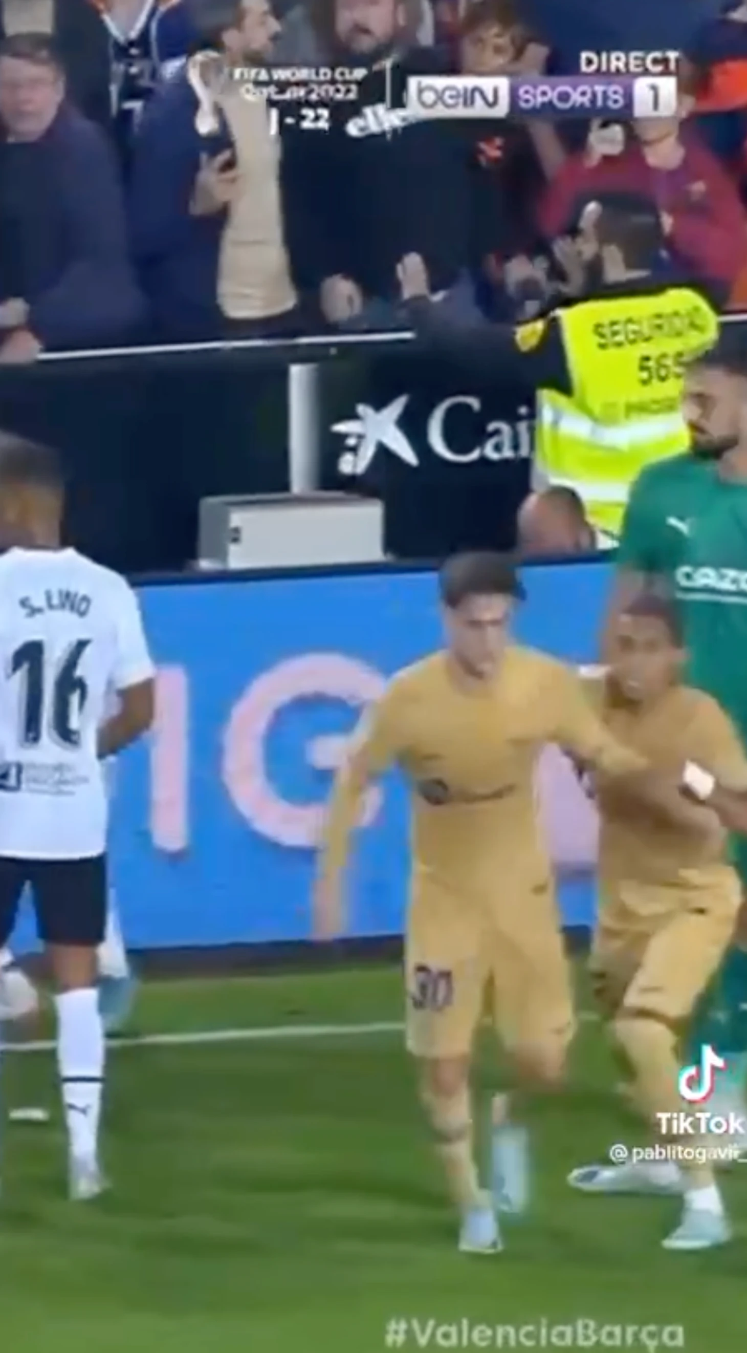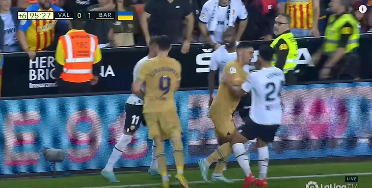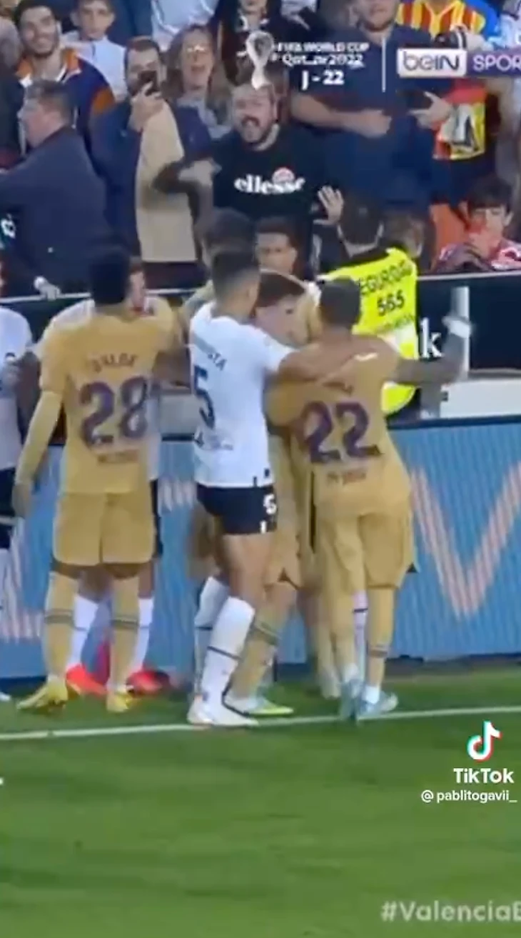 Сначала Гави отметился тем, что пихнул защитника «Валенсии» Габриэла в безобидной ситуации.