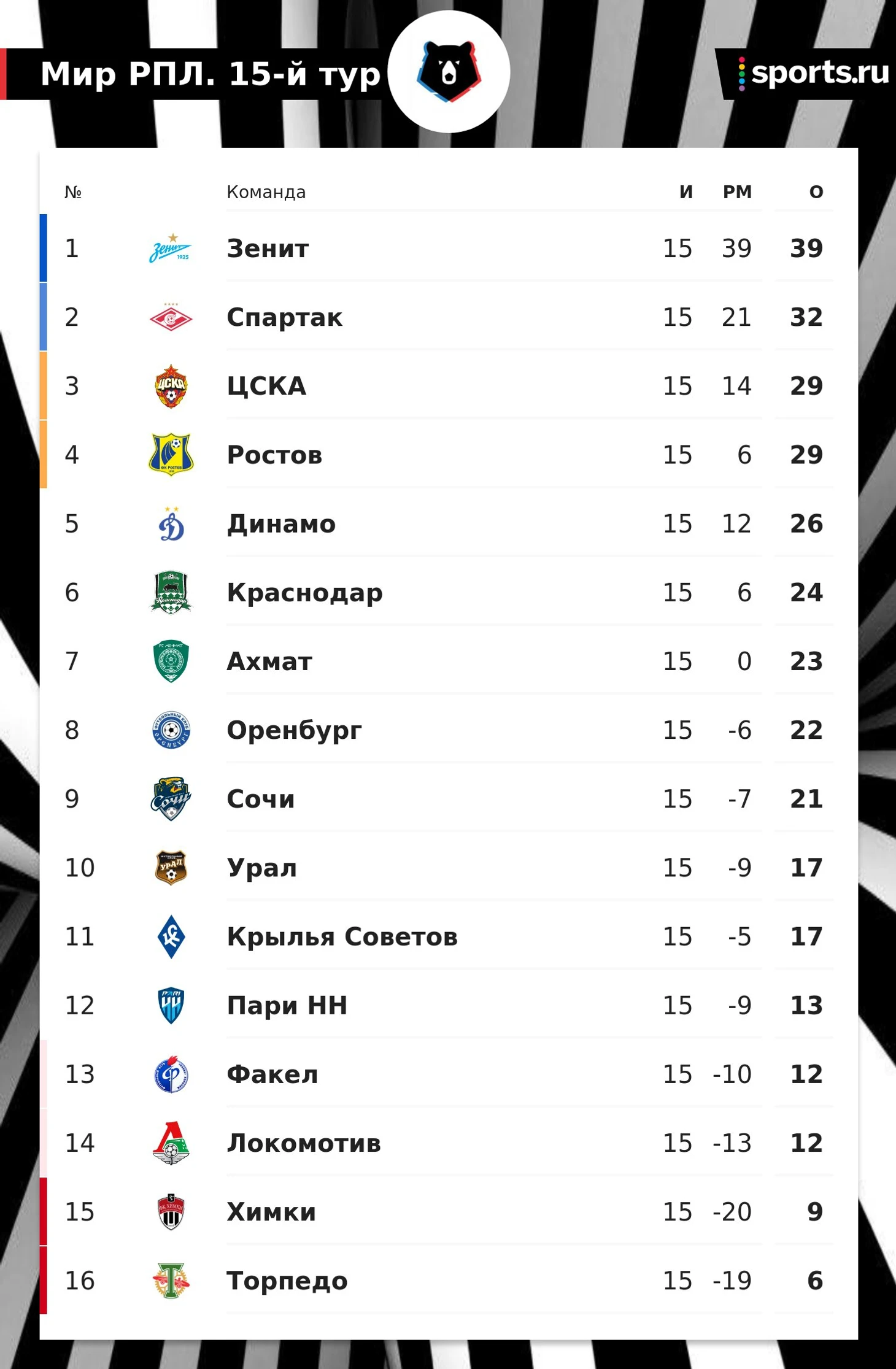 Сыграли полсезона: «Зенит» в мощнейшем отрыве, «Спартак» взлетел, «Локо» и «Сочи» пикируют