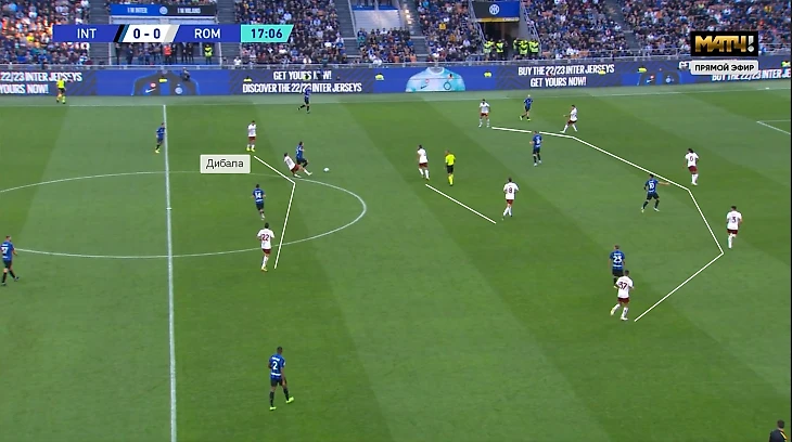 Моуринью дает Дибале свободу – он часто уходит ниже, тащит мяч на рывках и стягивает внимание нескольких соперников