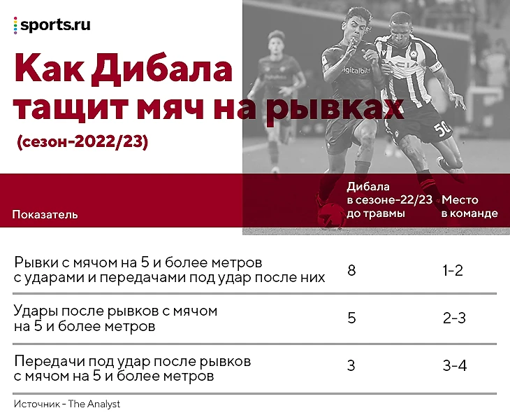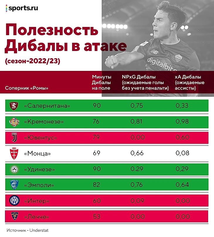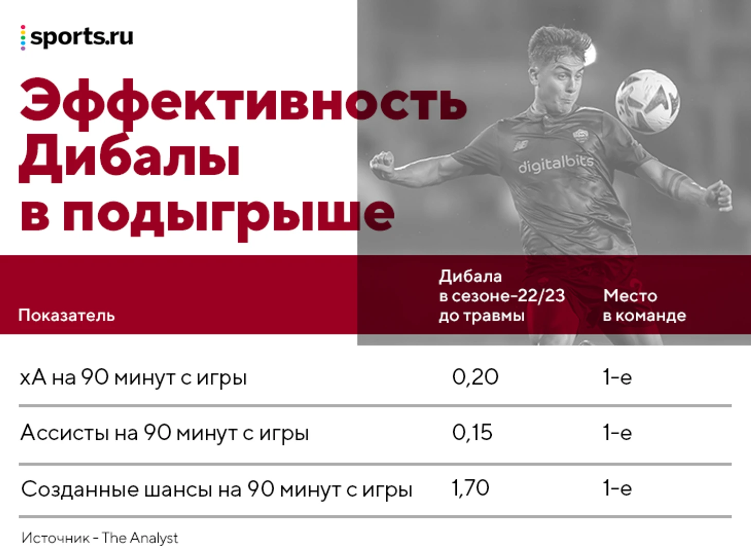 С начала сезона и до матча с «Лечче» 9 октября Дибала был лучшим в команде не только по ожидаемым и реальным ассистам за игру, но и по созданным шансам на 90 минут.