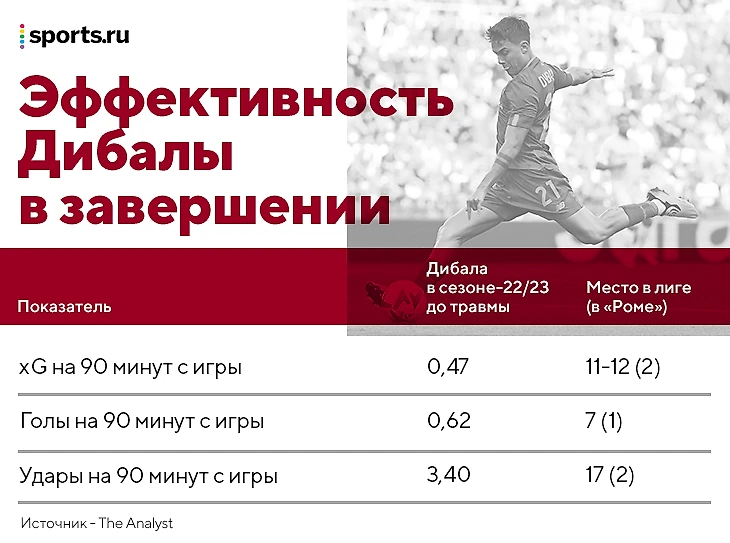 «Рома» – одна из самых пассивных команд лиги без мяча. Этот стиль подходит Дибале (способен выполнять базовые задачи)