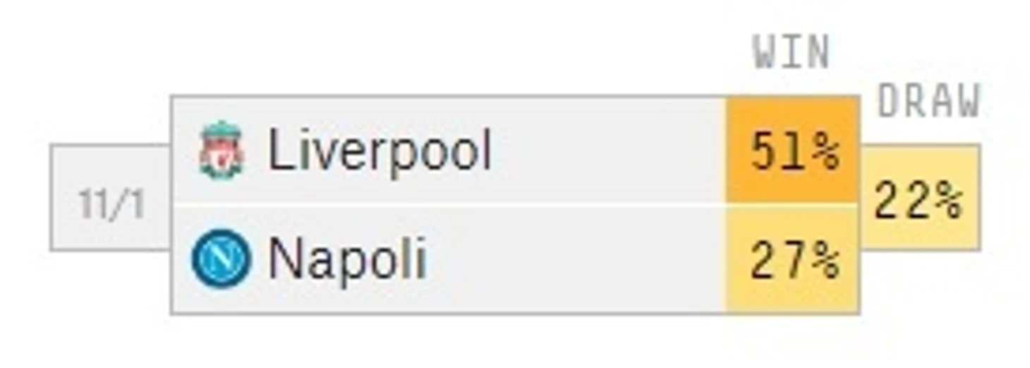 Суперкомпьютер проекта FiveThirtyEight верит, что хозяева поля возьмут реванш и оценивает шансы на победу «Ливерпуля» в 51%, а вероятность ничьей в 22%.