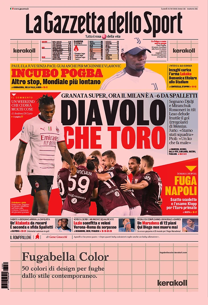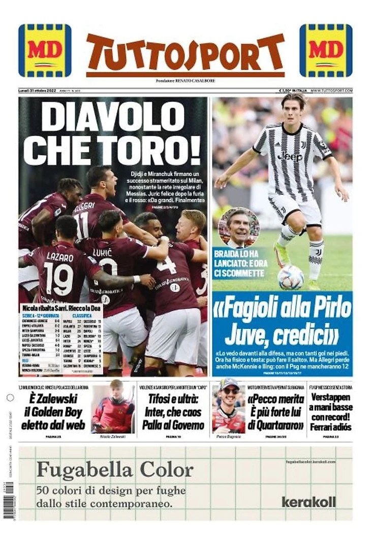 Чёрт, каков «Торино». Заголовки Gazzetta, TuttoSport и Corriere за 31 октября