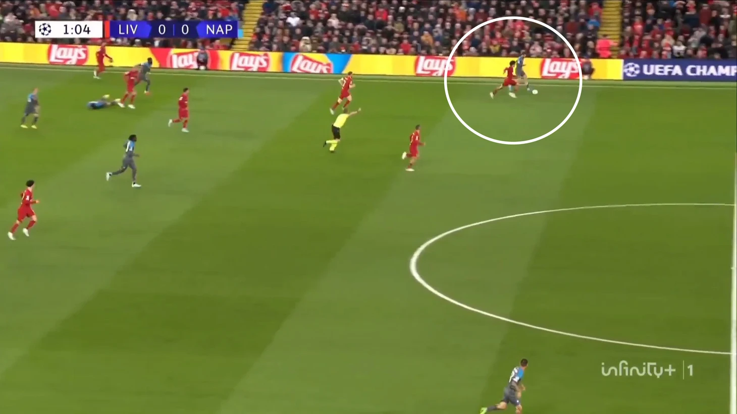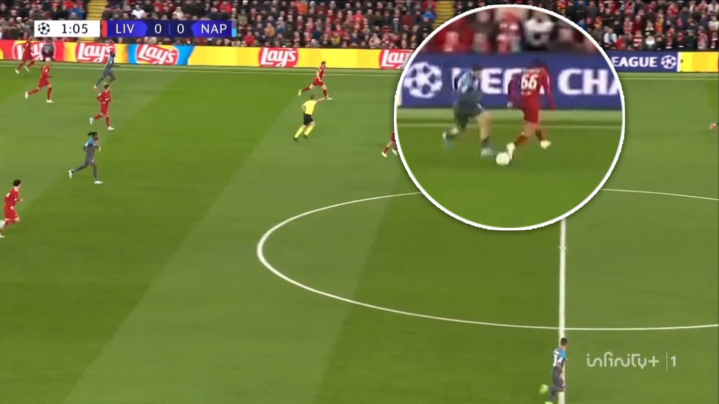 Хвича Кварацхелия уже на 2-й минуте матча с «Ливерпулем» классическим финтом обыграл Трента Александера-Арнольда.