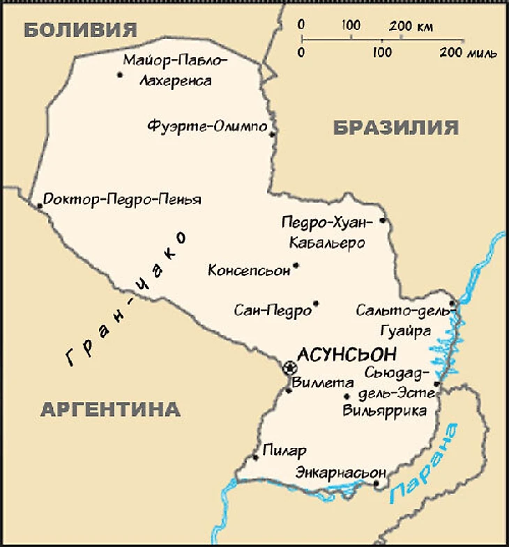 Для того, чтобы попасть в Парагвай из будущей столицы Аргентины, надо было подняться на тысячу километров вверх по реке Парана (второй по величине в Южной Америке после Амазонки). А затем преодолеть еще 300 км по ее притоку – реке Парагвай (собственно давшей название стране). Она приводила в столицу Асунсьон – единственный крупный город в тех местах. Никаких наземных дорог в Парагвай в те времена не существовало и строить их не собирались, так как значительная часть территории между двумя городами представляла из себя болота и джунгли.