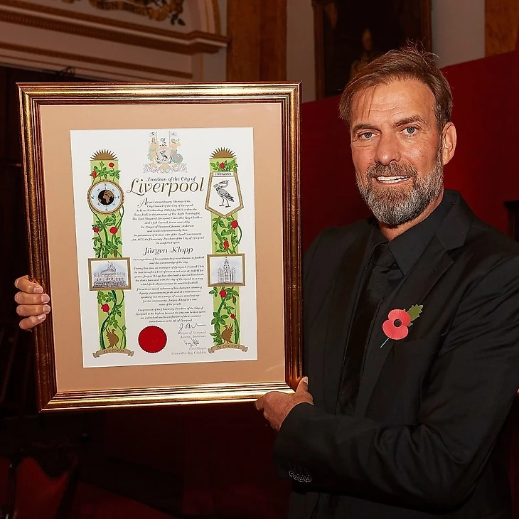 Сегодня Юрген Клопп получил награду «Freedom of the City» от городского совета города Ливерпуль.