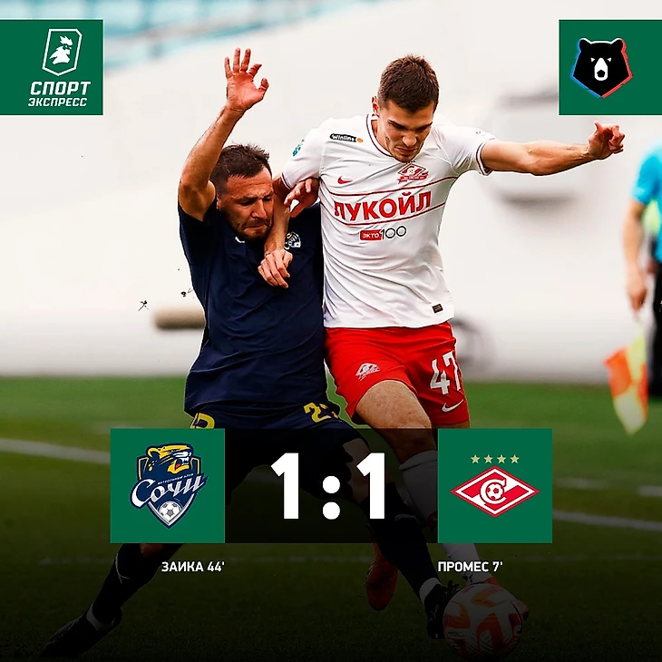 «Спартак» набрал 33 очка и сохраняет второе место в турнирной таблице. «Сочи» остался на девятой строчке (22 очка).