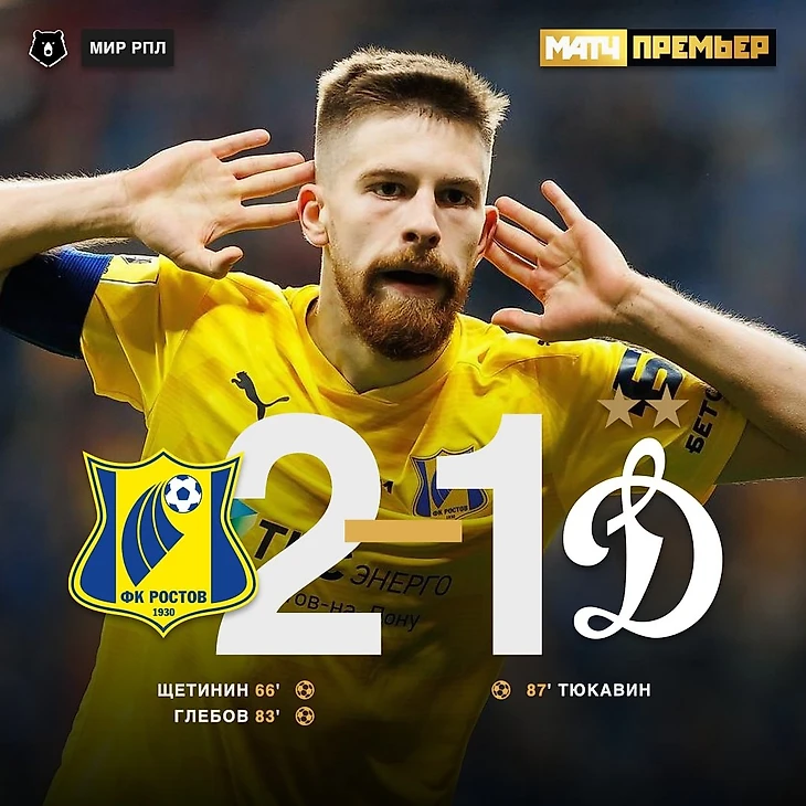 Закрывали тур команды из топ-8. Закрыли эффектно и не беда, что все самое вкусное оставили под конец. Щетинин размочил свою голевую засуху за клуб, именинник-Глебов оформил себе в подарок настоящую красоту, а Тюкавин второй раз подряд вышел на замену, а ушел с забитым мячом. "Ростов" единственный из первой пятерки набрал 3 очка, но пока не обогнал "Спартак" и остался на бронзовой строчке.