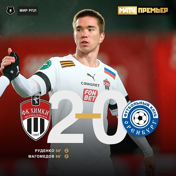 Футболисты "Химок" вспомнили, что умеют играть в футбол. Оглушительные 1:6 от "Динамо" в прошлом туре заставили Спартака Гогниева сделать изменения в команде. На поле вернулись Лантратов и Идову, изменилась схема, в целом перекроился состав, также отсутствовал Глушаков, получив повреждение, а не из-за конфликта с тренером. И "красно-черные" действительно забегали с горящими глазами, при этом конечно, не забывая много позволять у своих ворот, но там феерично вернулся в ворота Лантратов, отбивший восемь ударов в створ. Стоит отметить, что голы Руденко и Магомедова хороши как на подбор. "Оренбургу" же не хватало пропускавших матч лидеров - Аюпова, Малых и Марина да и с обороной у клуба большие проблемы - подопечные Марцела Лички пропустили больше всех в чемпионате (36 мячей), при этом находясь на восьмом месте.