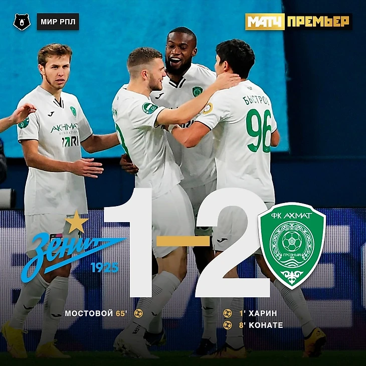 Действующий чемпион смог выдержать агрессивный напор "Ахмата" лишь 50 стартовых секунд, а к 7 минуте и вовсе получил от соперников нокаут и до конца тайма никак не мог прийти в себя. Семак нашел нужные слова в перерыве и хозяева поля прижали грозненцев во втором отрезке встречи, но лишь Мостовой порадовал себя голом в свой день рождения, а большего не получилось. Так сложились звезды, что Чистяков нелепо ошибался, а Вендел потерял свою технику. Что же, мы дожили до первого поражения "Зенита" в сезоне.