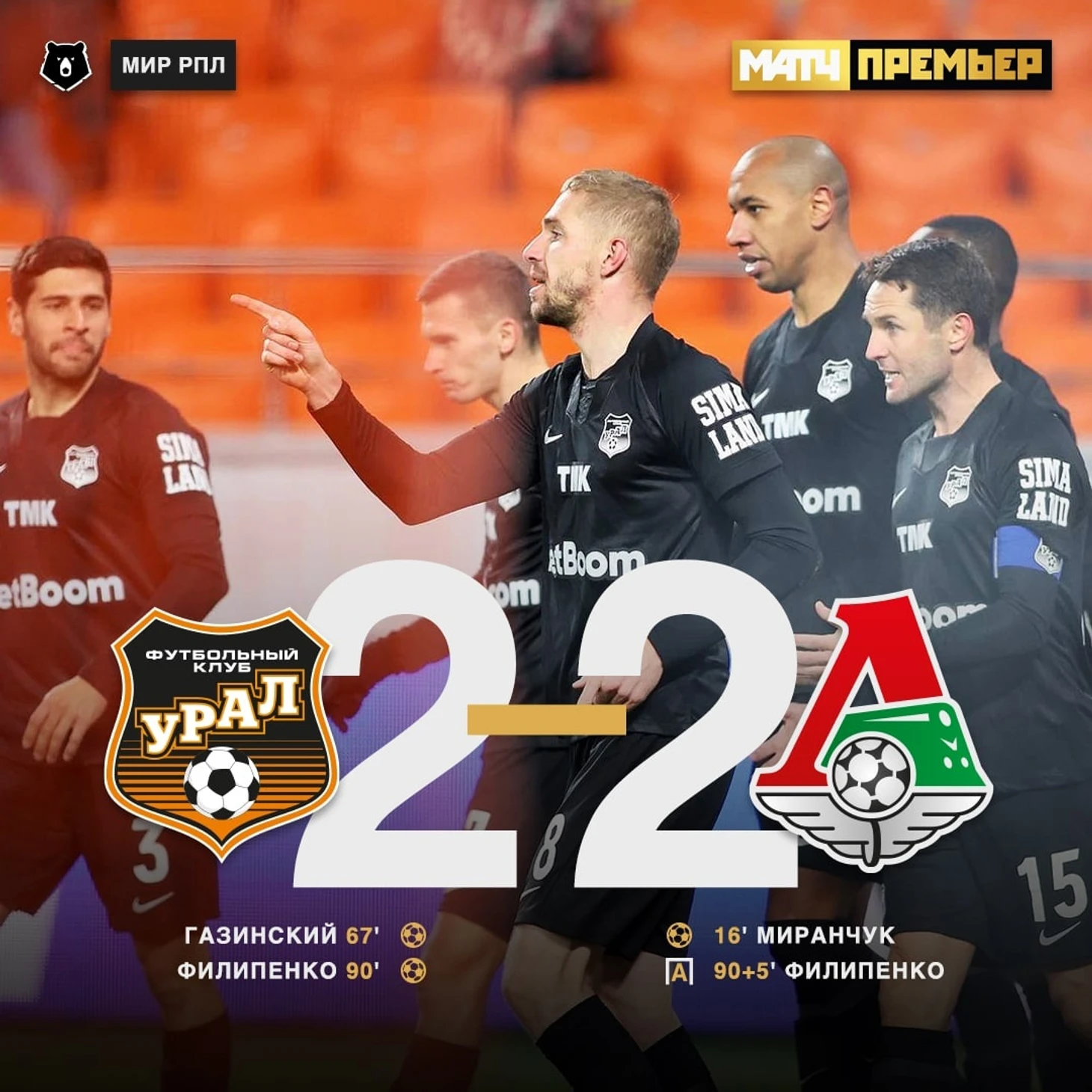 Мотоцикл "Урал" и паровозик "Локо" столкнулись на своем пути и мирно разъехались, при этом оставив после личной встречи много интересного. Газинский уже привычно забивал у дальней штанги третий тур подряд, а Филипенко решил сыграть на два фронта. Благодаря ничьей успешная серия свердловской команды в 6 матчей без поражений продолжилась, а москвичи довольствовались тем, что обогнали "Химки" и заскочили на 14 строчку.