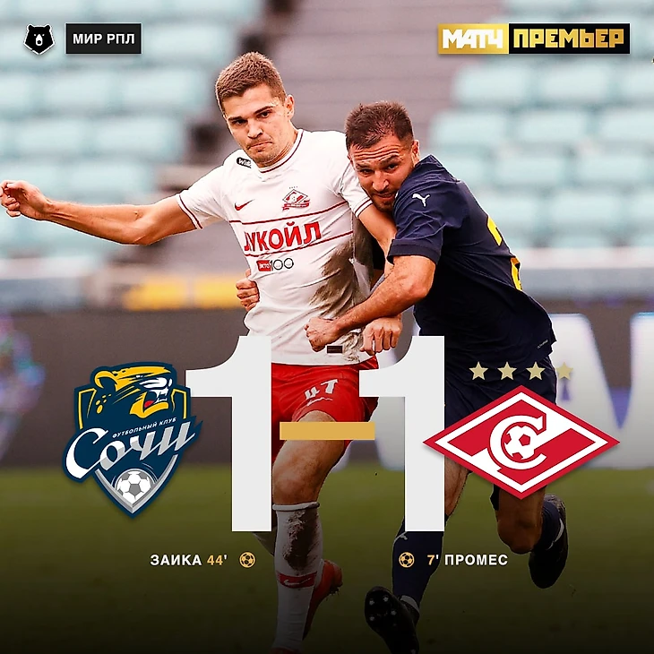 А началось все неплохо, Квинси Промес уже на седьмой минуте матча забил нетипичный для себя гол головой и оторвался в гонке бомбардиров от ближайших преследователей с 13 мячами. Под конец тайма хозяева сравняли счет, несмотря на большие старания Селихова. Во второй половине встречи, все попытки игроков что-то изменить были тщетны. Кстати, старший тренер "Сочи" Вадим Гаранин во время игры отсутствовал, в связи с разговорами об его увольнении, в эти слухи верится все больше.