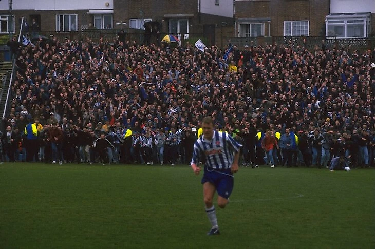 Новости о предстоящем сносе стадиона положили начало одному из самых эпичных противостояний болельщиков и владельцев клуба в футбольной истории Англии. В начале все ограничивалось достаточно мирными протестами – баннерами и фанатскими зарядами с трибун против клубного руководства. На этом фоне команда играла кошмарно и завершила сезон 1995/96 на 23-м месте в Лиге 1 (третий дивизион), вылетев таким образом в Лигу 2 – на самое дно профессионального английского футбола.