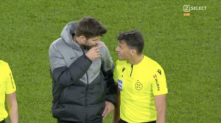 Новая роль: Пике полез разбираться с арбитром из-за удаления Левандовского – и сам схватил красную прямо в подтрибунке