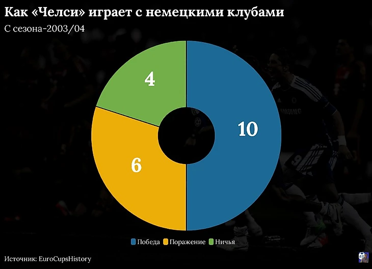 На картинке – разбивка по результатам «Челси» против соперников из Германии. Выборка – с сезона 2003/04.