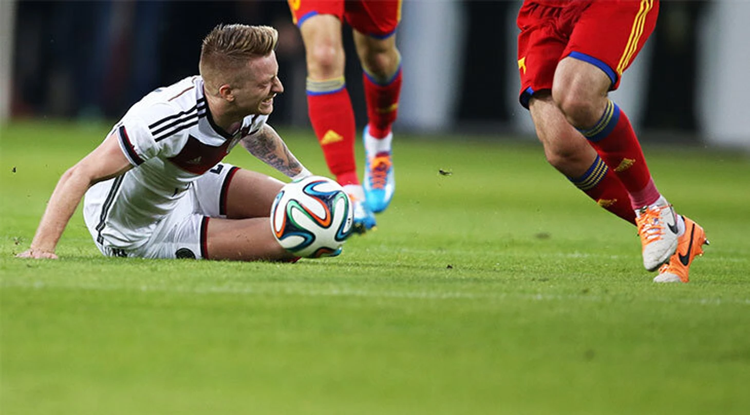 За день до отлета в Бразилию немцы проводили последний товарищеский матч со сборной Армении. За три минуты до перерыва Ройс пошел в отбор в центральном круге, хотя необходимости совсем не было. Итог – разрыв связок левой лодыжки и два месяца покоя.