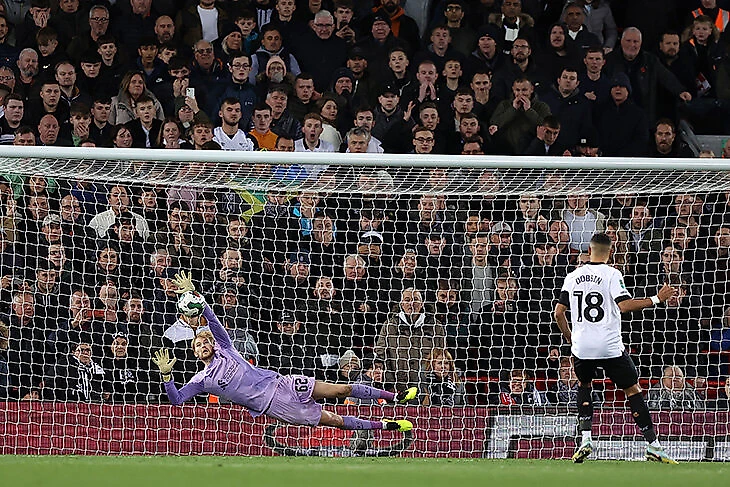 Под конец появились Роберто Фирмино и Дарвин Нуньес, но додавить не смогли – закончили 0:0. Тут отдуваться за всех пришлось 23-летнему вратарю Куивину Келлехеру. И парень справился: взял три удара из пяти – именно потащил, игроки «Дерби» били точно в створ.
