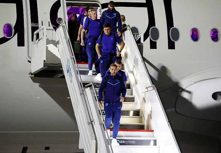 Джейдон Санчо пытается пробраться в самолёт сборной Англии в Катар