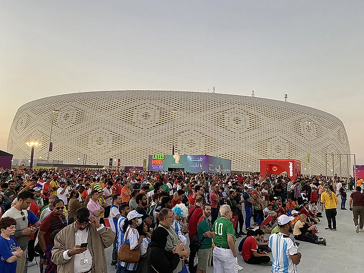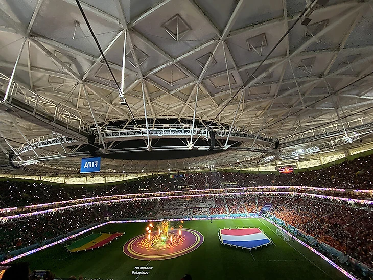 Стадион «Аль-Тумама», где встретились Нидерланды и Сенегал, строили четыре года и открыли прошлой осенью. Фасад арены напоминает гахфию, местный головной убор.