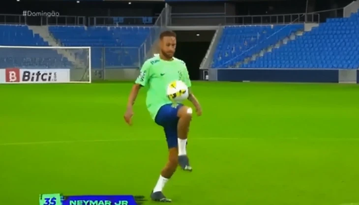 Во время подготовки к ЧМ Неймар ошеломил своих товарищей по команде, обработав мяч, выпущенный вниз с 35-метровой высоты.