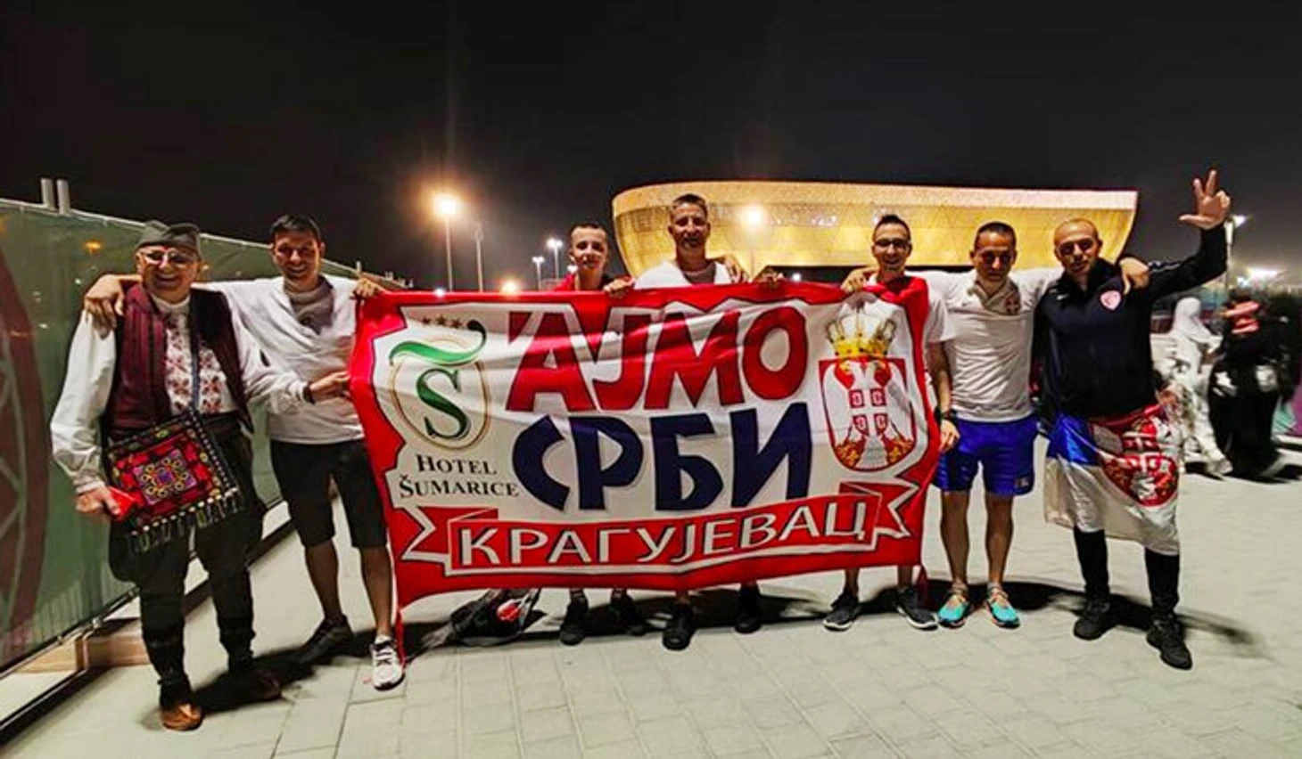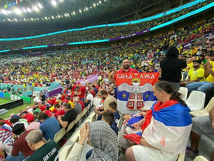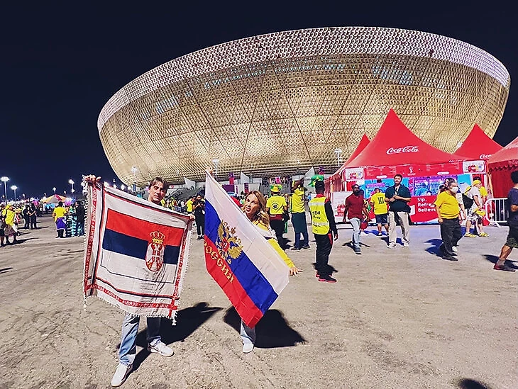 Поболеть за сербов на стадион «Лусаил» пришли и несколько российских болельщиков, среди которых – генеральный директор Европейской МедиаГруппы Роман Емельянов.