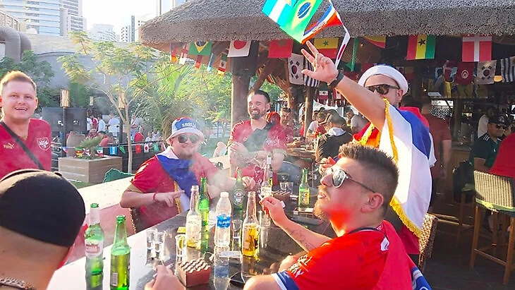 Корреспондент Kurir Александар Радонич добавил, что сербские болельщики создали в отеле атмосферу белградского кафе: выпивали, курили, пели и танцевали под хит Неделько Байича «Коктейль любви».