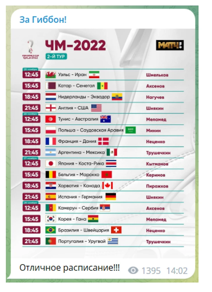 «Матч ТВ» показал расписание комментаторов на второй тур ЧМ – и оказалось, что ни на одном из них не поработает Константин Генич. Разумеется, Генич немедленно отреагировал в своем телеграм-канале – выложил расписание и подписал его: «Спасибо, любимый канал. Посмотрю по телеку».