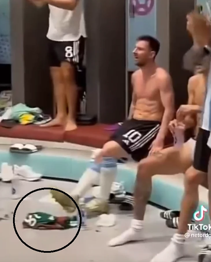На кадрах из раздевалки действительно видна футболка сборной Мексики, которую Месси будто отбрасывает в сторону, предварительно на нее наступив.