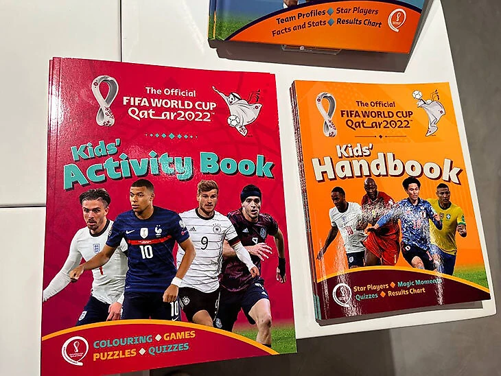 Есть еще альбомы из Сочи и Пхенчхана, значки и наклейки с символами Олимпиад и чемпионатов мира и даже раскраски и книжки с логическими задачками по теме ЧМ-2022.