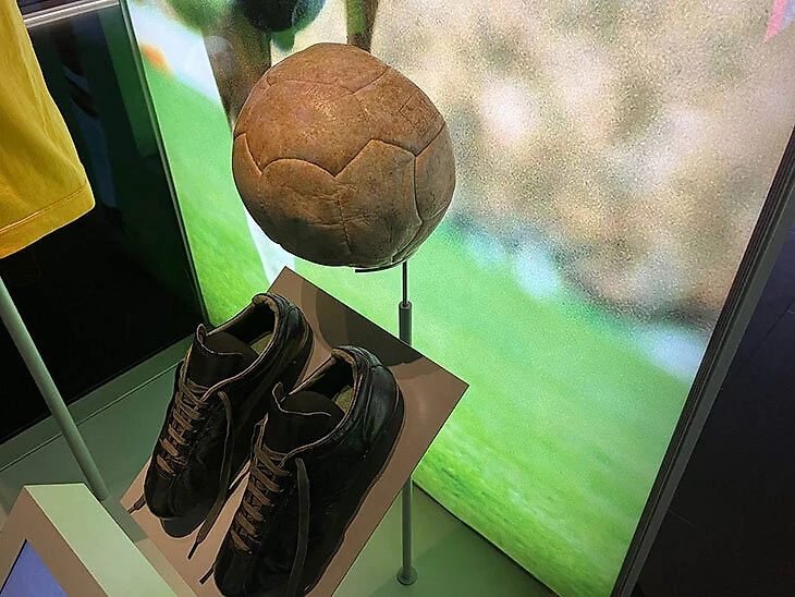 В экспозиции Пеле – действительно очень важные вещи. Мяч, которым он забил тысячный гол в карьере, и бутсы с финала ЧМ-1970 в Мексике (Пеле забил первый гол).