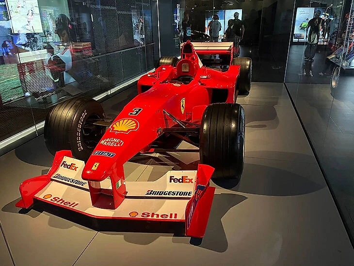 Кстати, по соседству целый болид Михаэля Шумахера. В нем «красный барон» побеждал в Гран-при Австралии, Бразилии, Сан-Марино и Европы в 2000-м.