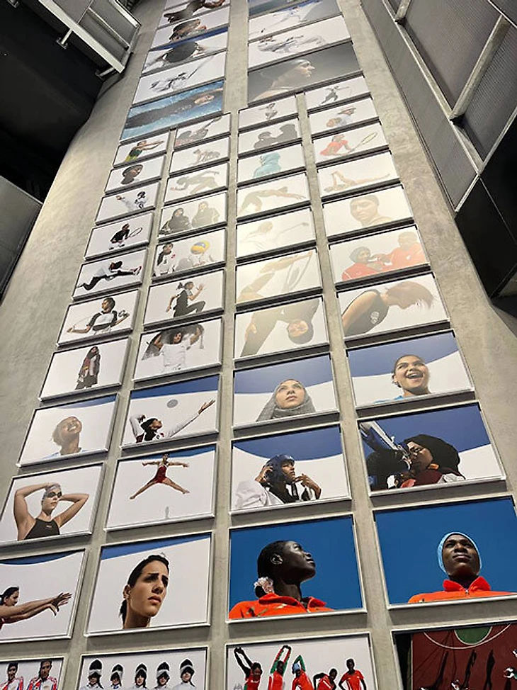 Первый же экспонат – стена с красивыми фотографиям девушек-спортсменок. В основном, это катарки, но есть и кенийки или суданки.