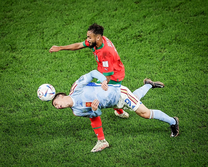 Испания сражается с Марокко за выход в 1/4 финала ЧМ. В основное время команды не смогли забить, игра перешла в овертайм.