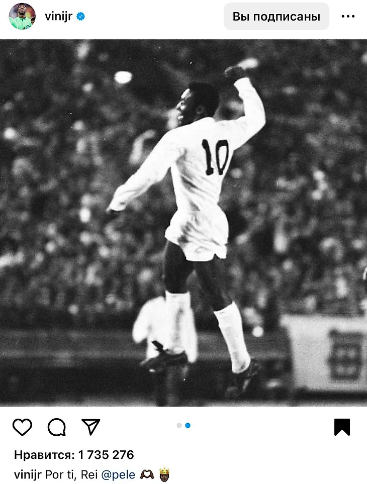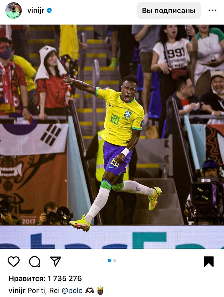 «Для тебя, Король🫶🏻🤴🏿». Винисиус посвятил свой гол на чемпионате мира великому Пеле 🙏🏻🙏🏻🙏🏻