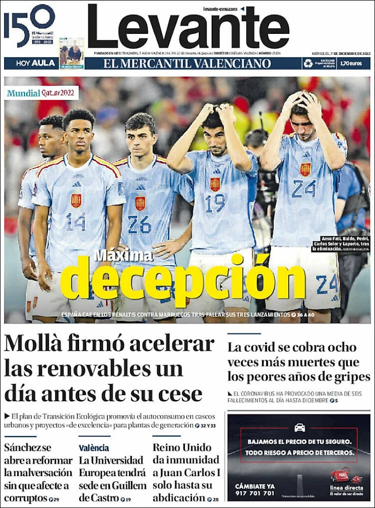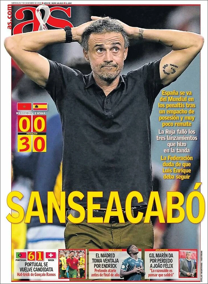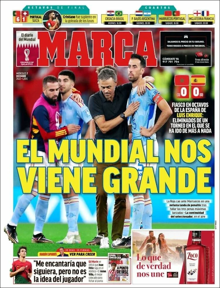 Но оставим статистику: вы в блоге «Первая полоса», поэтому посмотрим, как на поражение отреагировали испанцы (а бонусом в конце – как порадовались в Марокко!)