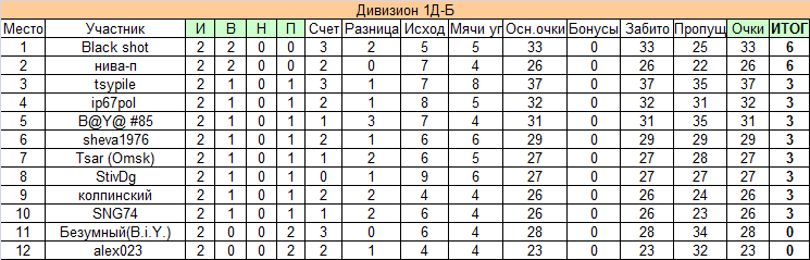 В Лиге 1Д-Б все внимание будет приковано к матчам делящих первое место и уже создавших себе отрыв в одну победу нивы-п и BlackShot’а. Первый проведет субботний матч с летящим на пути в ПЛ tsypile, а затем с sheva1976, а второй – соответственно, с Безумным и StivDg. Результата можно ждать какого угодно, причем самого благоприятного для их преследователей: вполне возможно, что один из скрытых матчей за лидерство состоится между Tsar’ем (Omsk) и SNG74 либо между B@y@85 и колпинским.