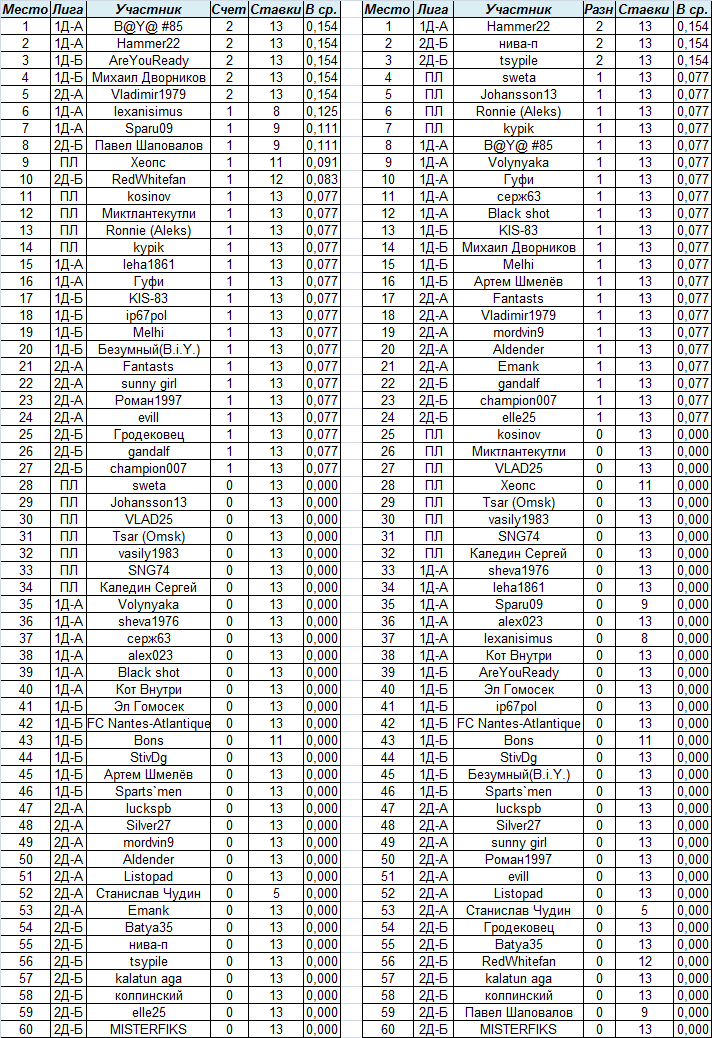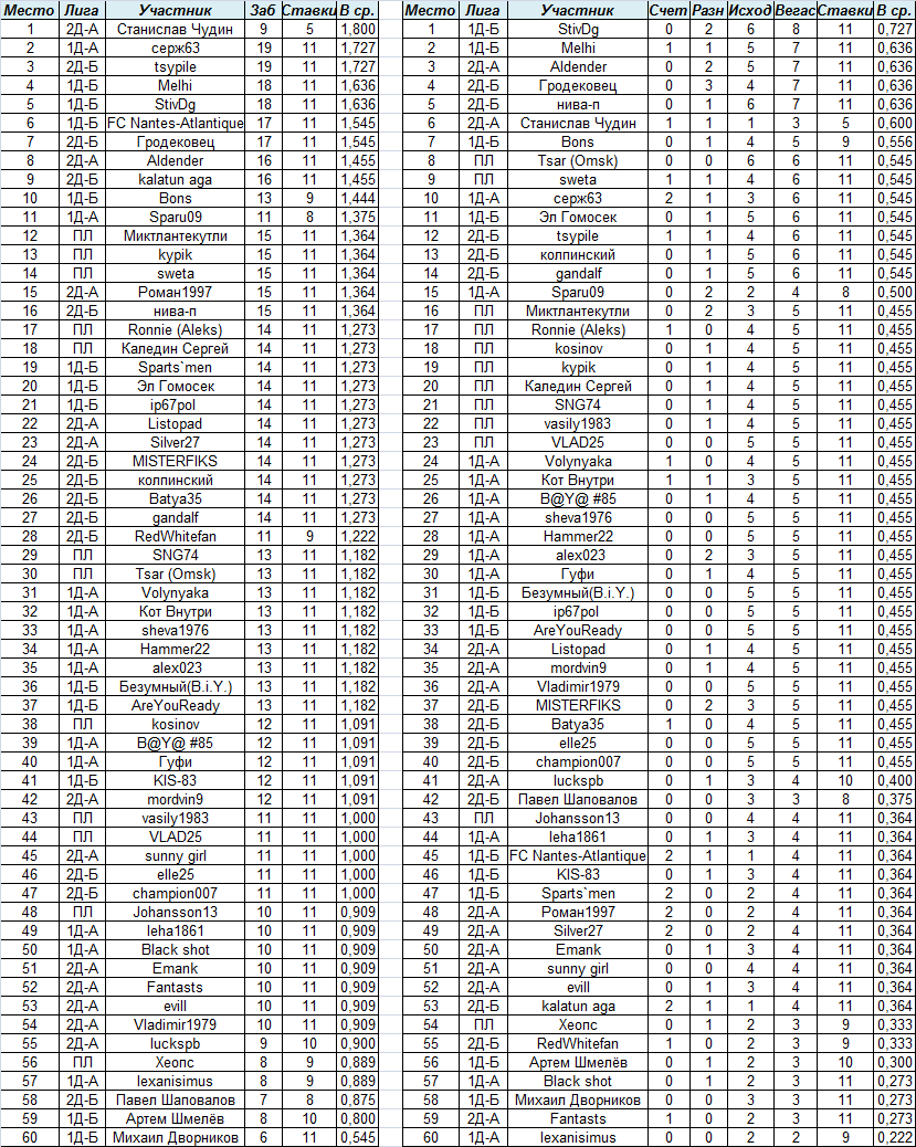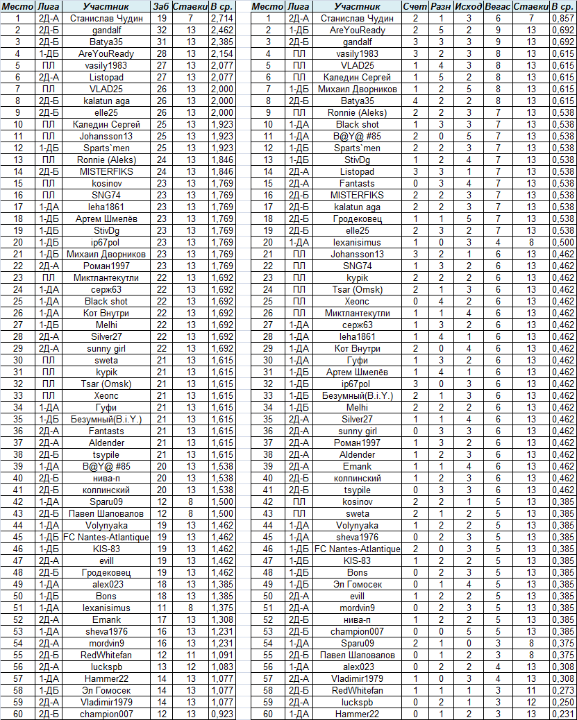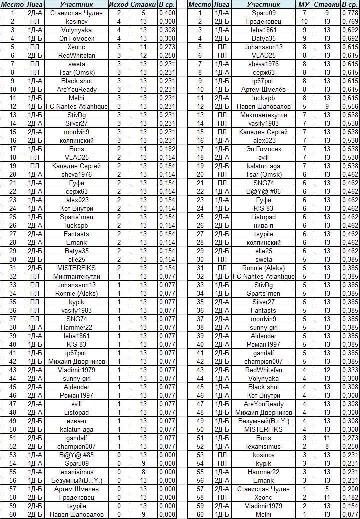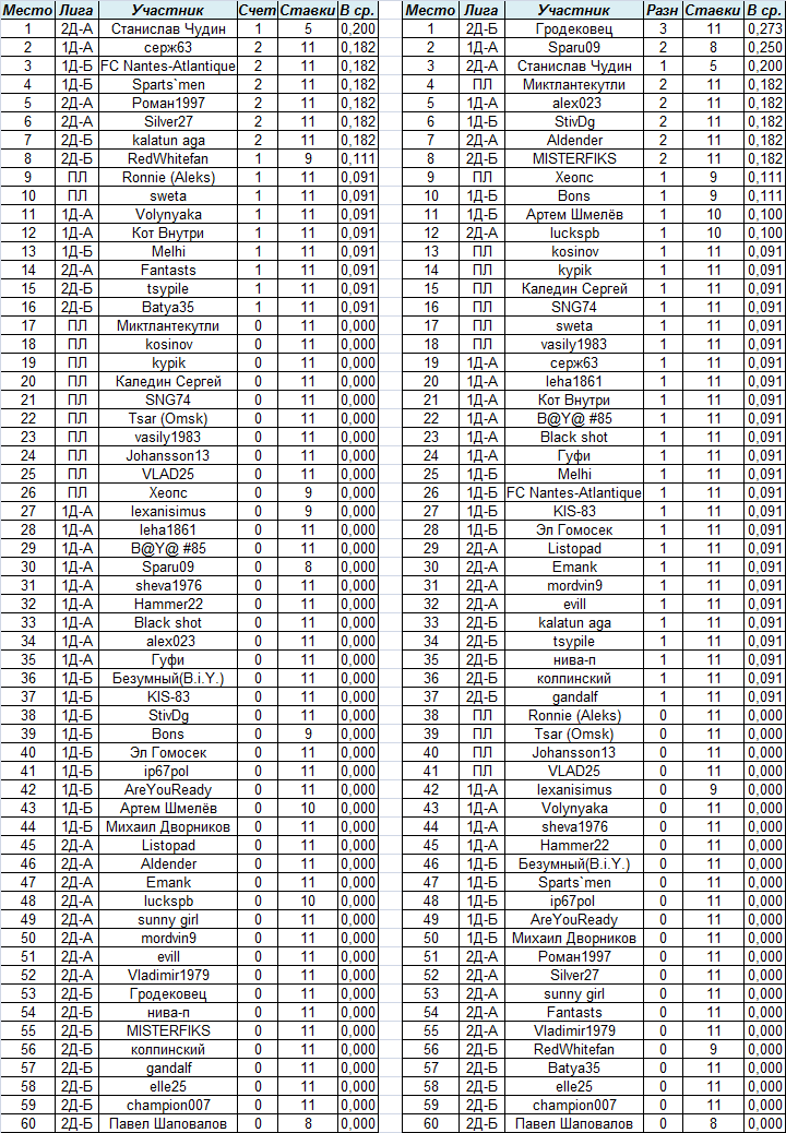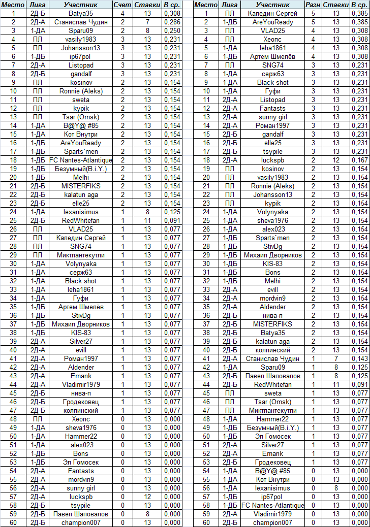 Статистика Первенства №2 по Евротурнирам. Часть №2