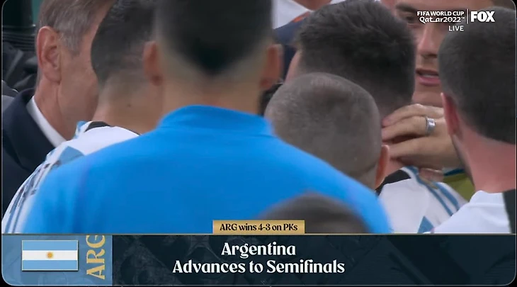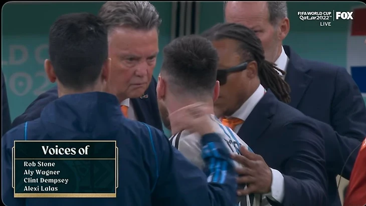 Похоже, у Лео Месси за эти 120 минут скопилось очень много всего, и после празднования с партнерами он пошел что-то высказывать тренерскому штабу голландцев и лично Луи ван Галу.