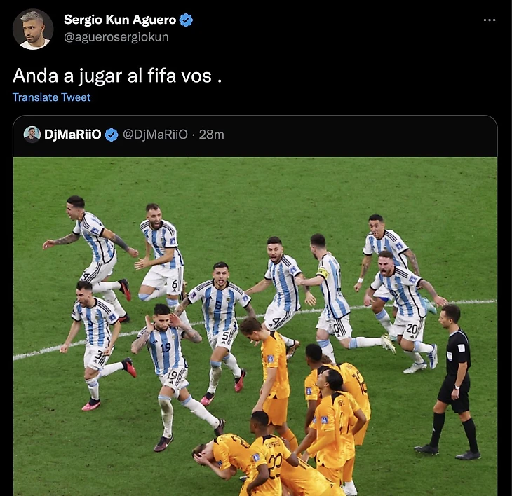 Тот после матча запостил фото, сделанное сразу после последнего удара в серии пенальти – на нем несколько аргентинцев, прежде чем праздновать, троллят голландцев.