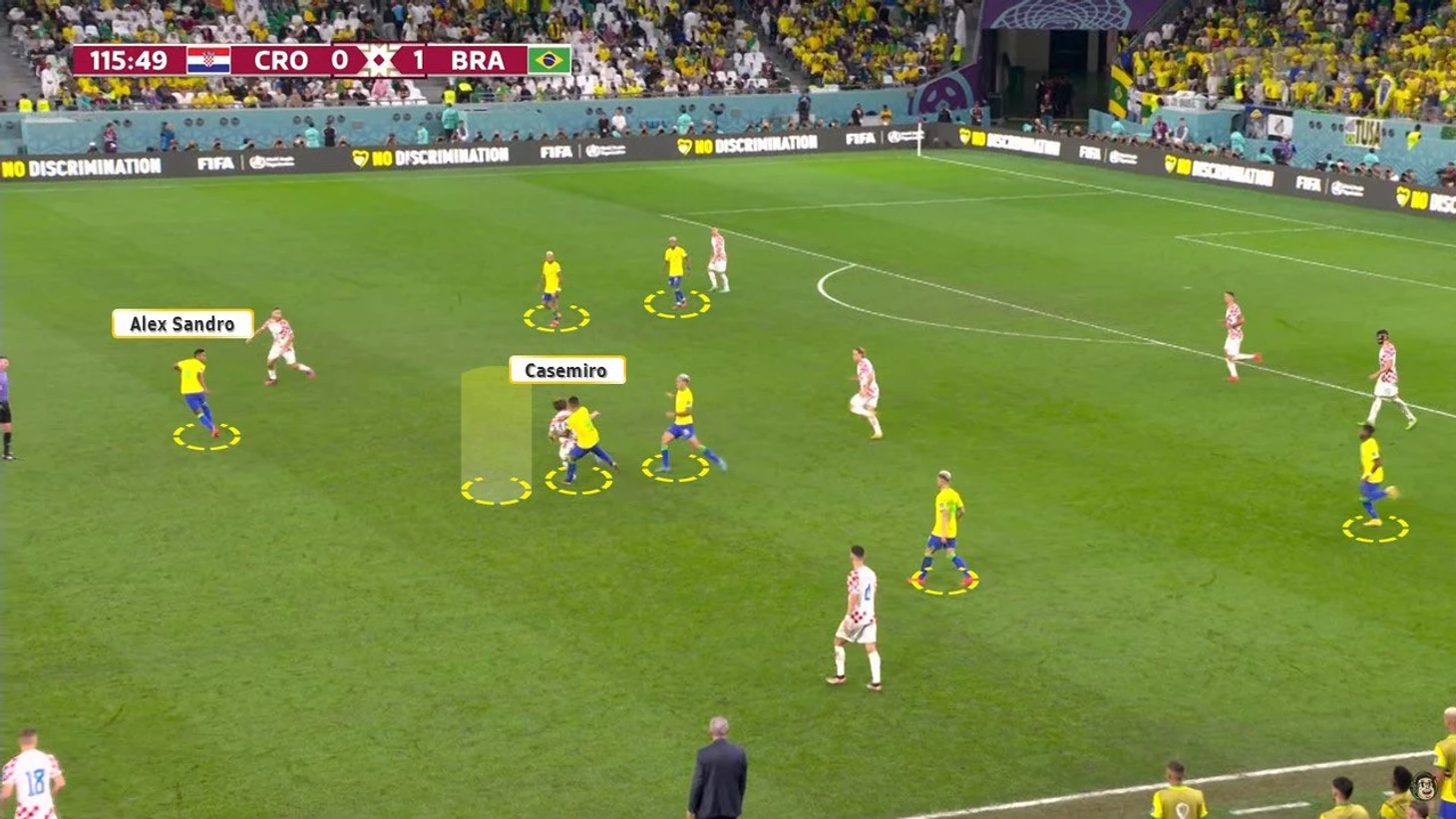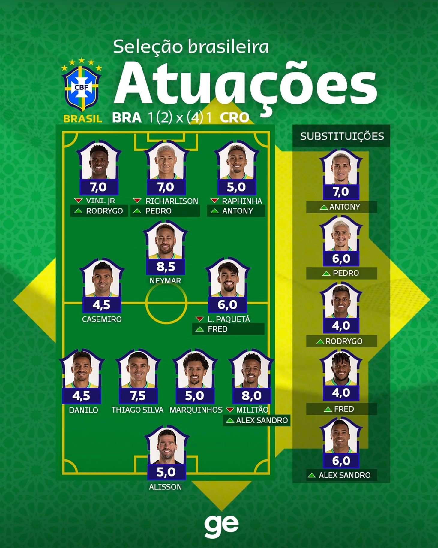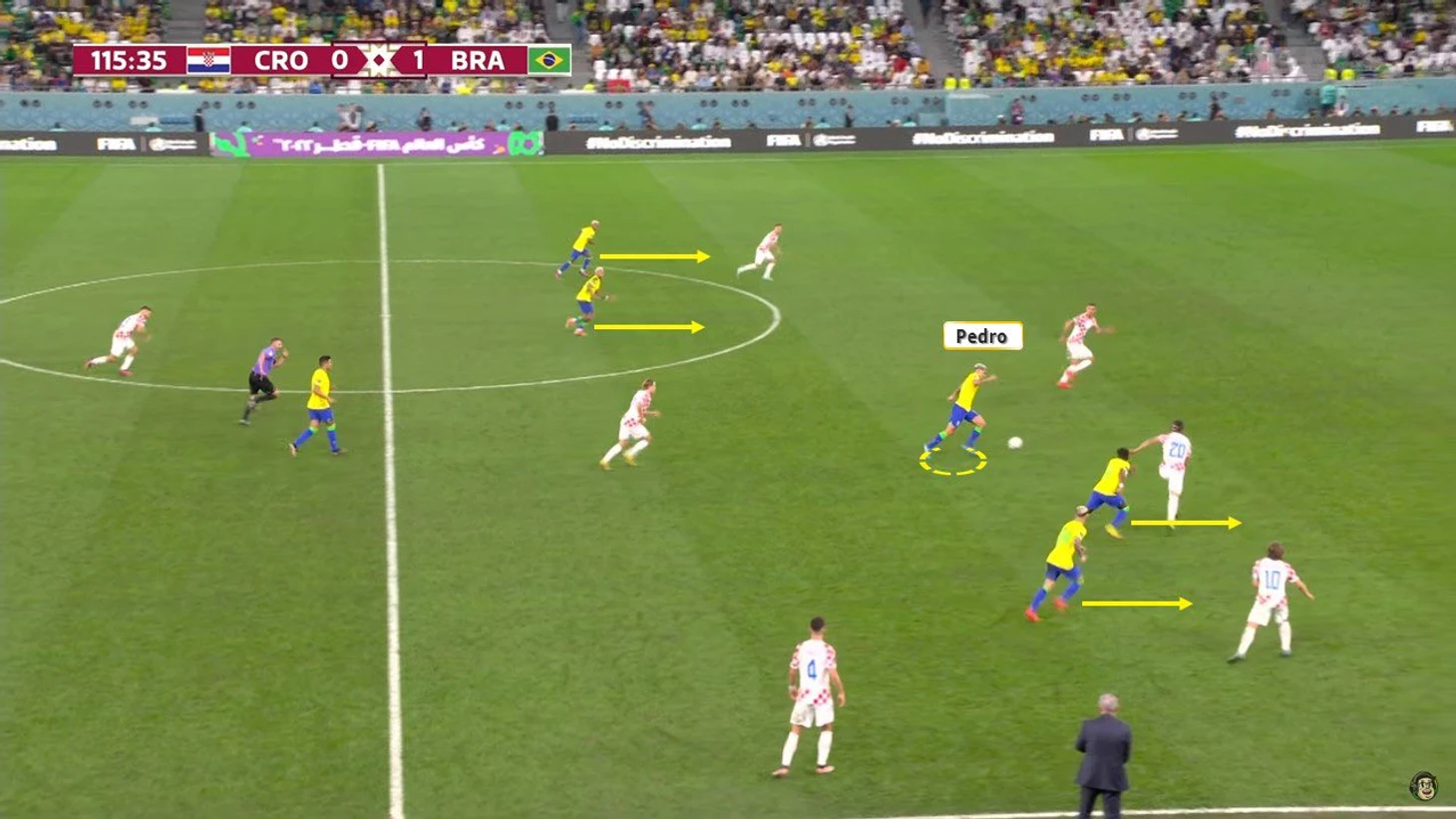 Удержание инициативы, потерпеть немного времени, хорваты вот-вот перейдут на навал, тем более они выпустили фактурного форварда- не лучше бы было выпустить Фабиньо? Но у мерсисайдца при Тите сложная история любви с Селесао. Изрядно он недоиграл в эти 6 лет. Наверстает ли, ведь уже 29? На чемпионатах мира уже вряд ли. Фред...Бруно Гимараэс... Дани Алвес...Скажите мне что любимчиков или нелюбимчиков нет. Потому что как провел турнир Милитао поставило под вопрос обоснованность включения суперветерана в любом качестве.