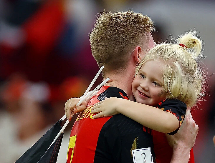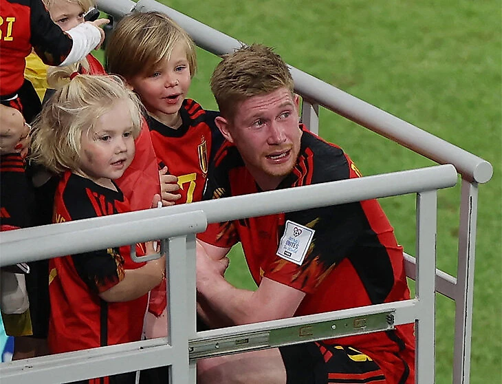 Единственную победу Бельгии на ЧМ – в первом туре – Кевин Де Брюйне отметил с детьми на трибунах.