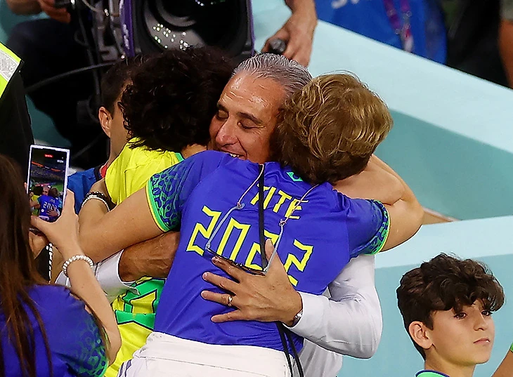 Тите тоже попал в кадр – но явно рад не этому, а тому, что вышел в четвертьфинал и его семья рядом.